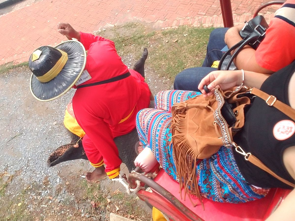 また、ツアー内容には書かれていなかったですが、象乗り体験ができるところでは、トラをじかに触って記念撮影できたのでいい思い出になりました(200バーツほどかかりましたが)。象には二人乗りでファームを15分ほどかけて1周しました。
