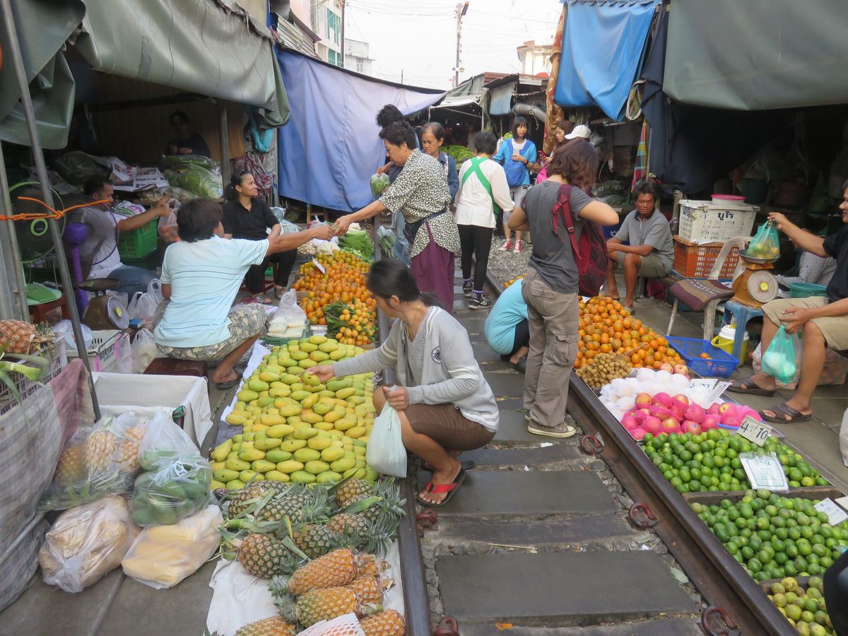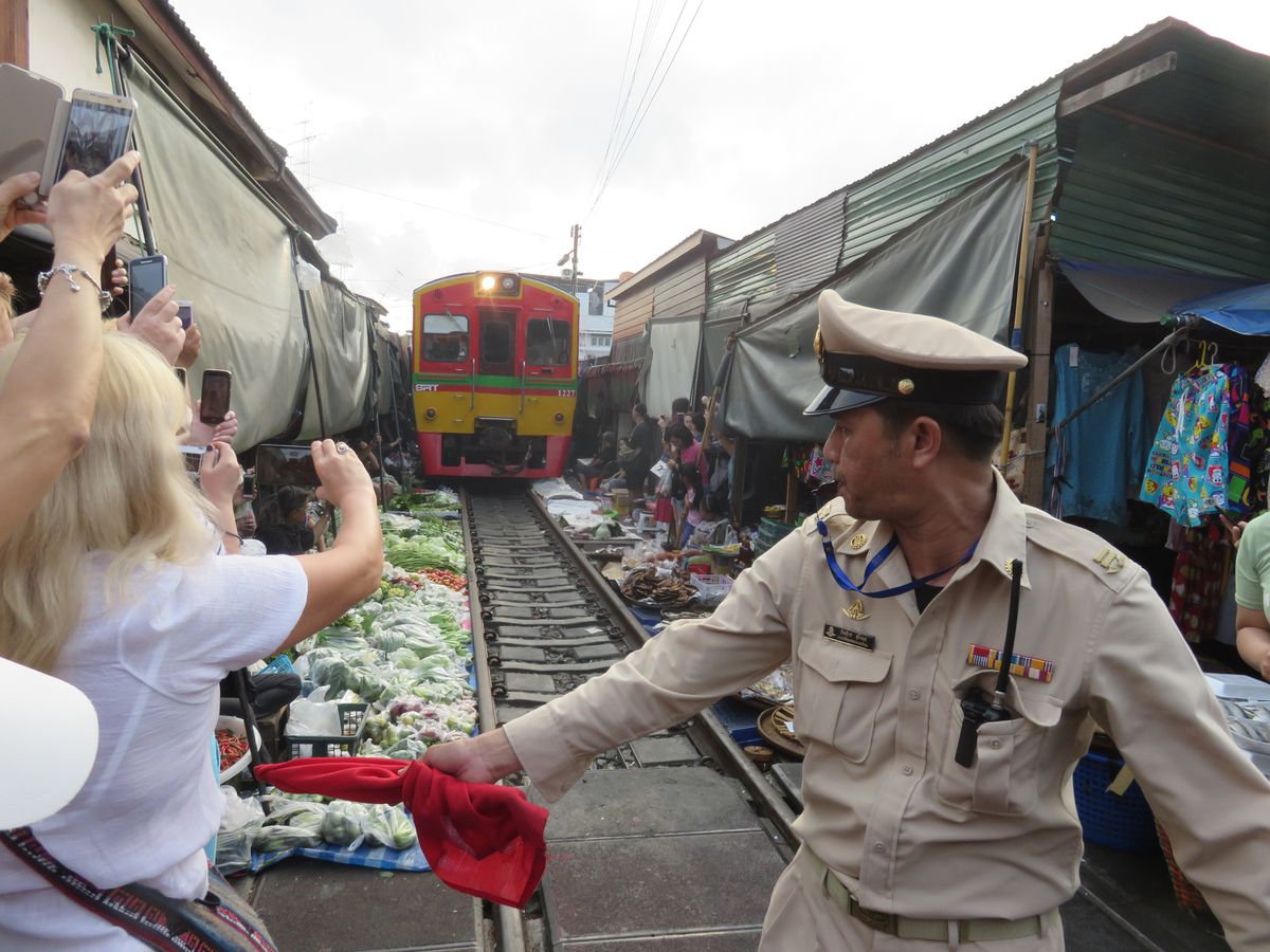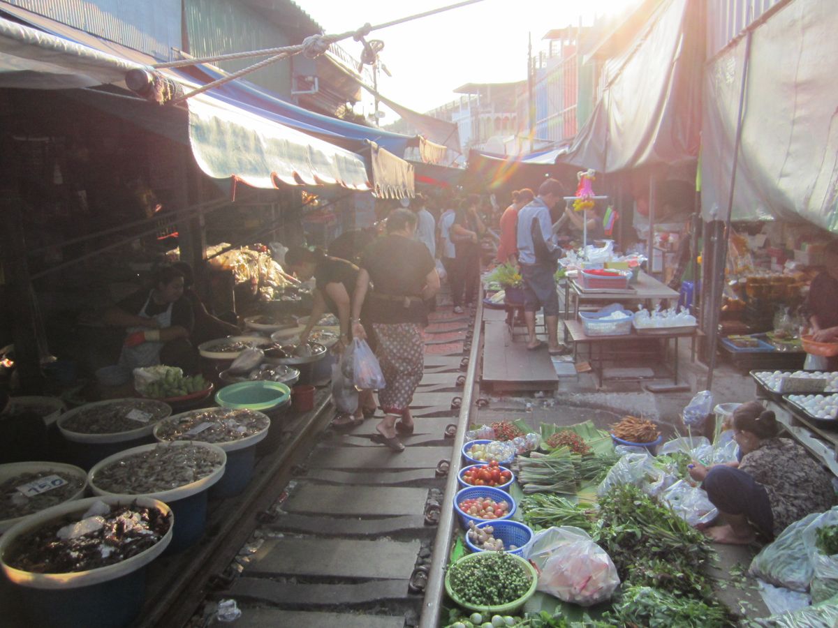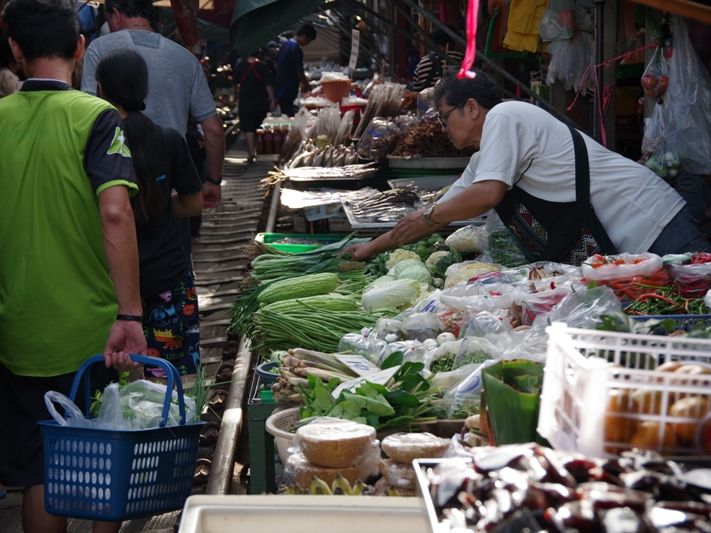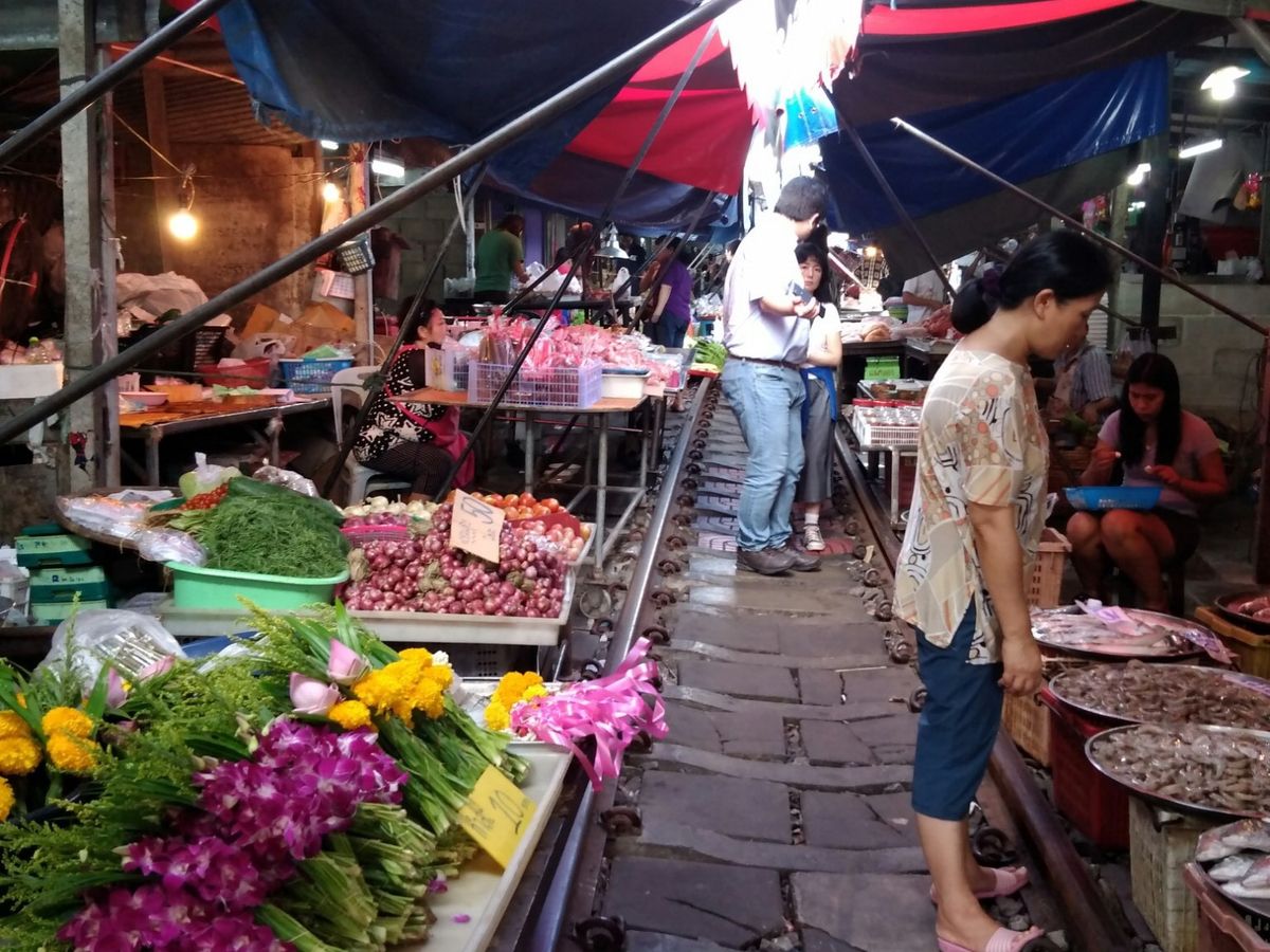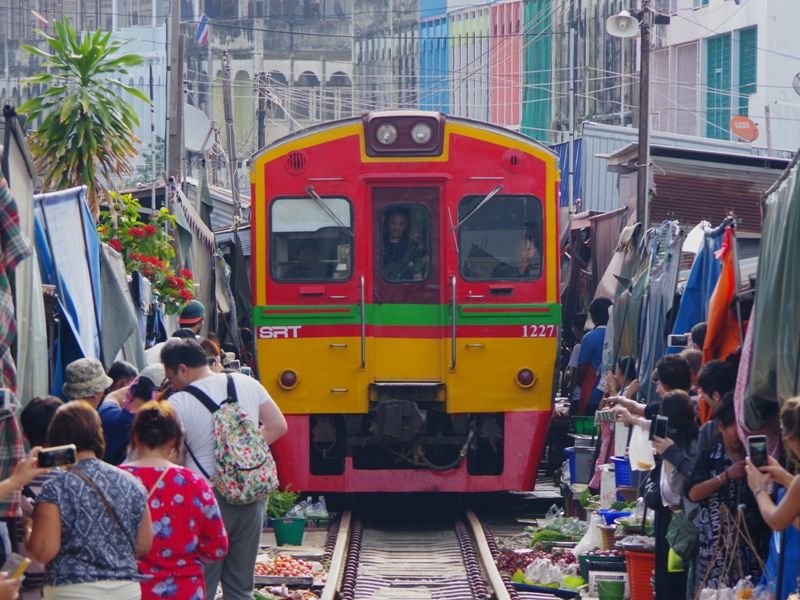 バンコクからの移動に1時間、路線市場は観光客で大混雑しています。