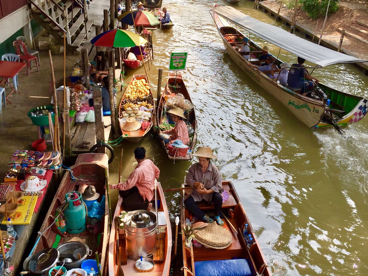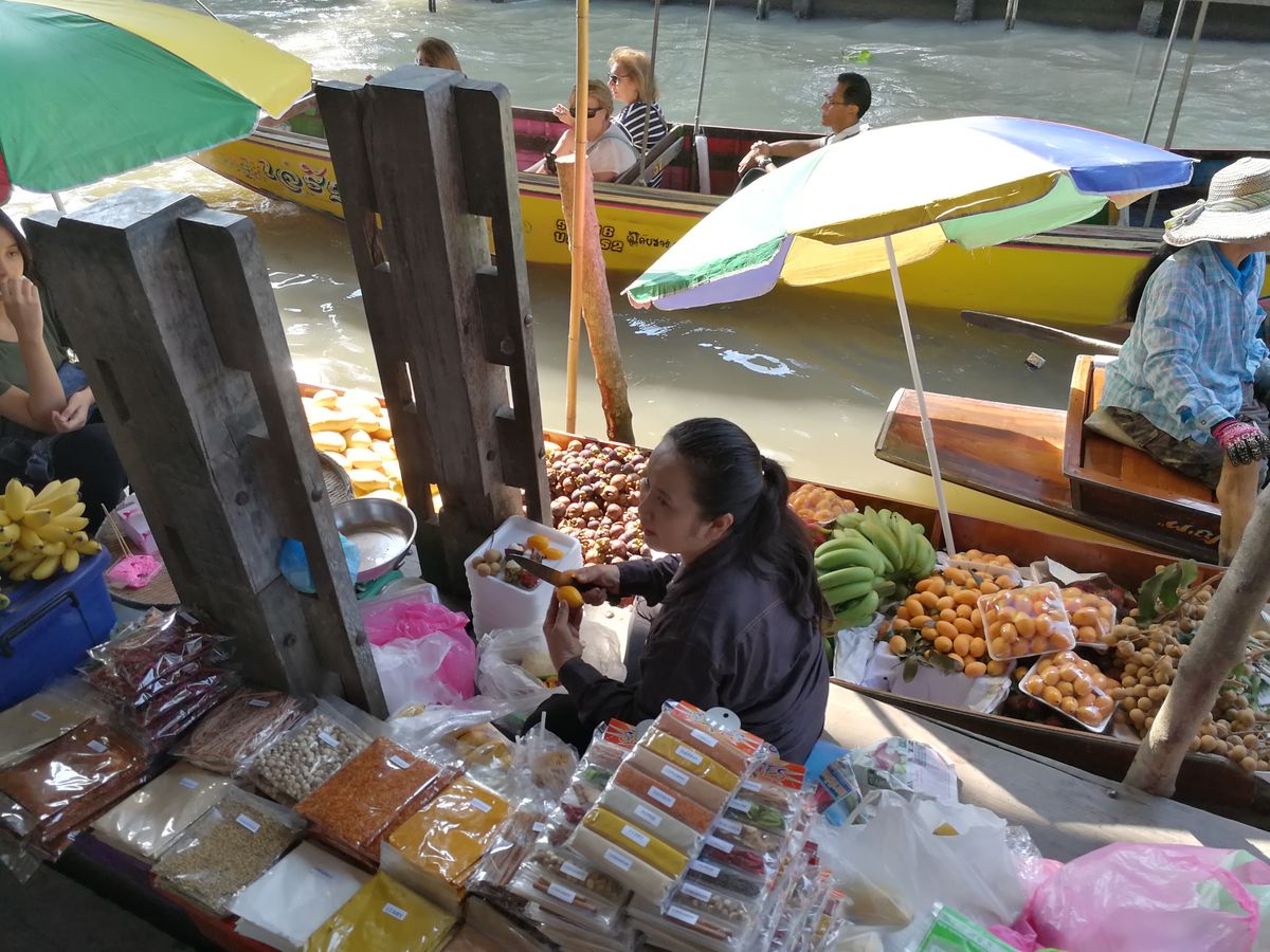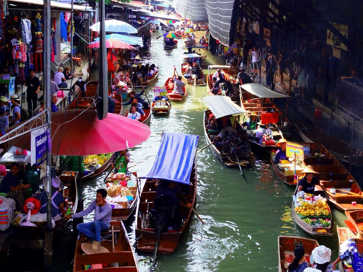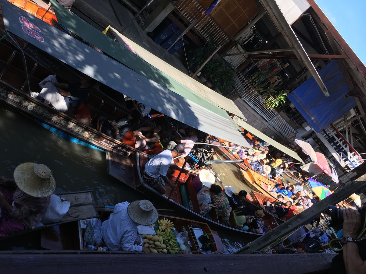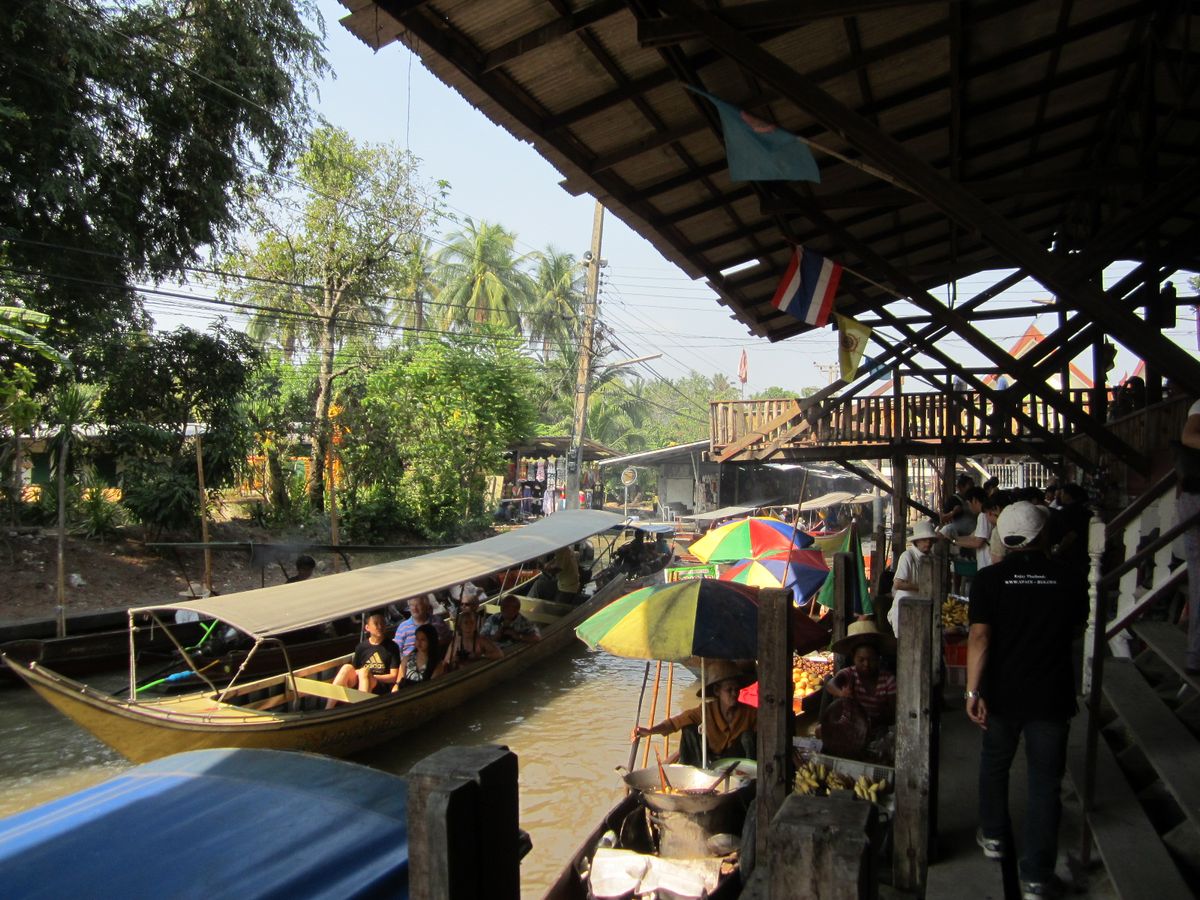 バンコクからの移動に1時間、路線市場は観光客で大混雑しています。