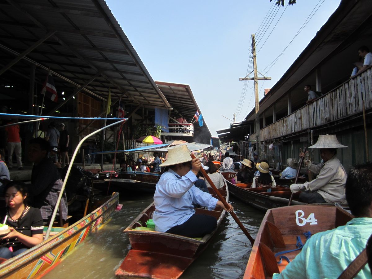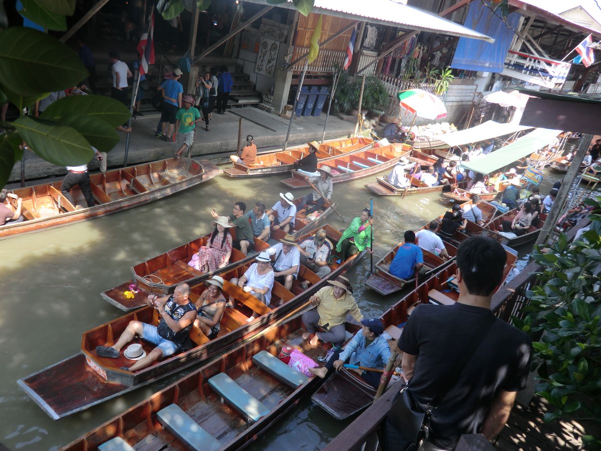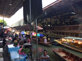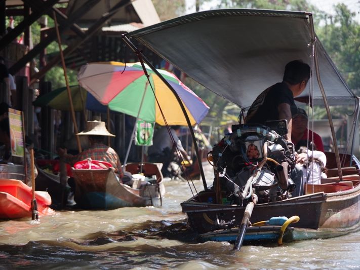 水上マーケットはここでもボートが狭い水路で大渋滞。両方向の航路なので一方通行にすれば、もっとスムースに移動できるのに、と余計なことまで考えてしまいます。水は汚く、何となく悪臭がありましたが、それはそれでタイらしい雰囲気を味わえました。