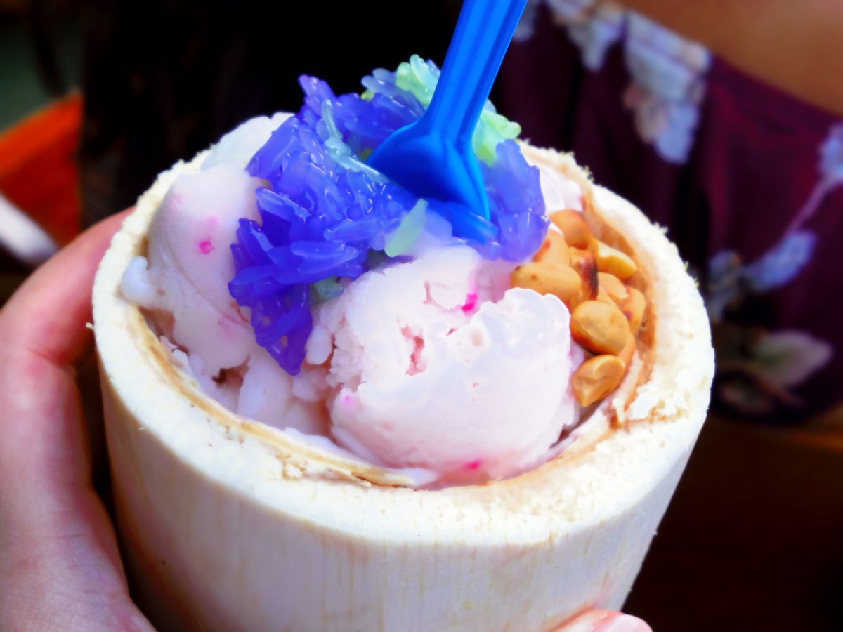 ・水上マーケットは別料金の手漕ぎボートに乗りましたが、意外と安定していてとても楽しかったです。定番のココナッツアイスを購入しましたが、暑かったのでさっぱり美味しかったです。時間も結構長めで十分でした。
