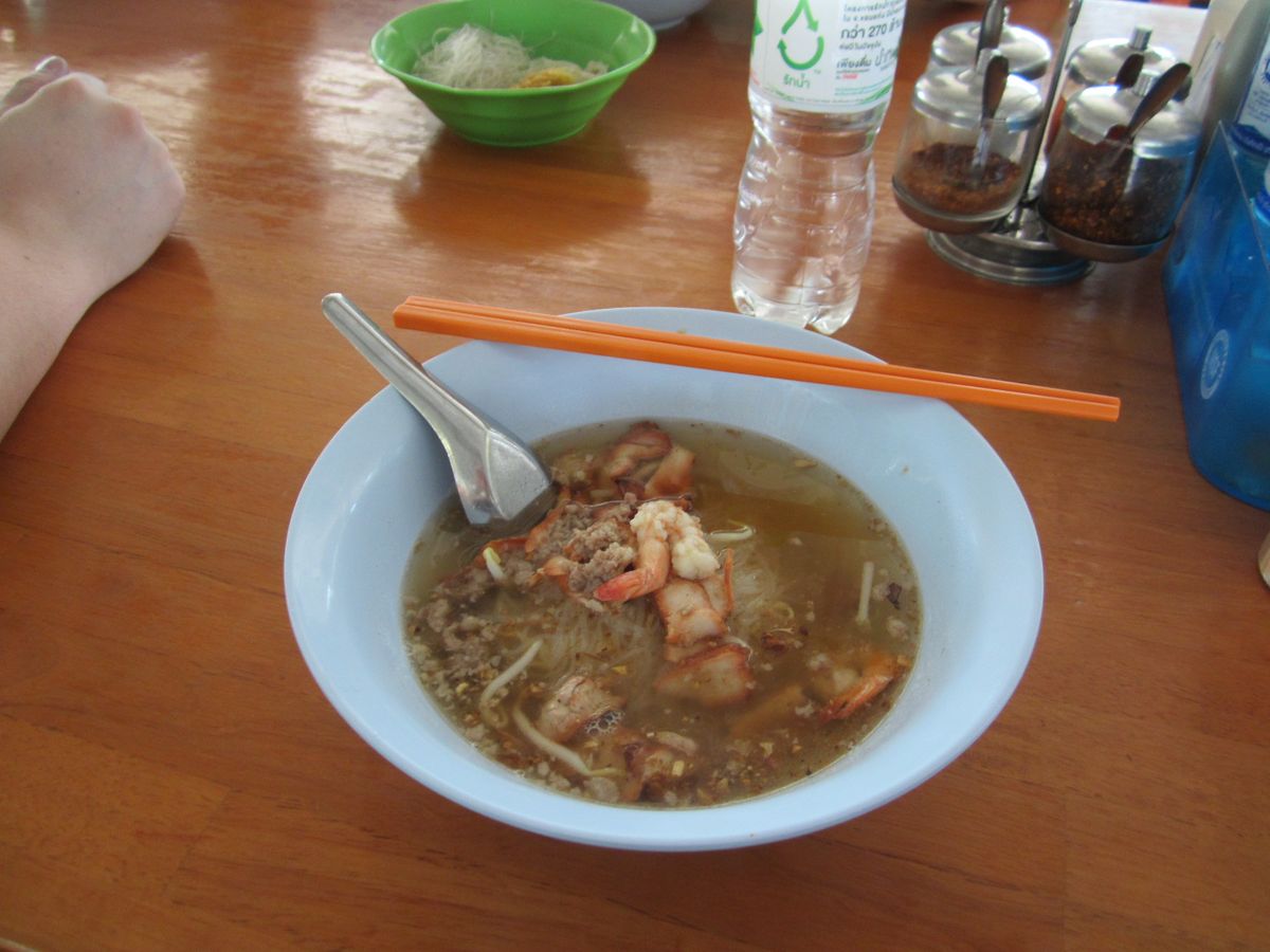 市内に帰る途中で食べた〝タイ式ラーメン〟はとても美味しかった。