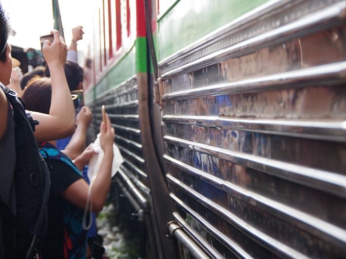 メークロン市場では、予定より早く電車が、到着してしまいましたが、目の前で、見ることができて、その迫力は、圧巻でした。場所もよかったです!