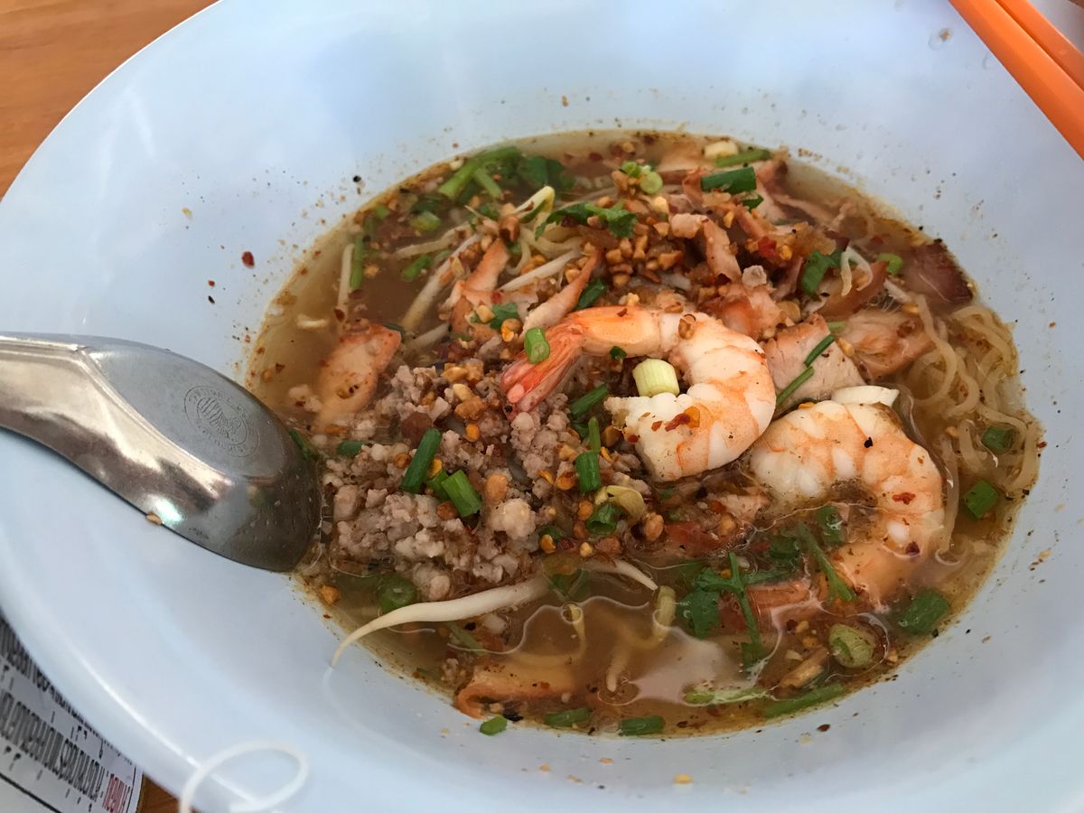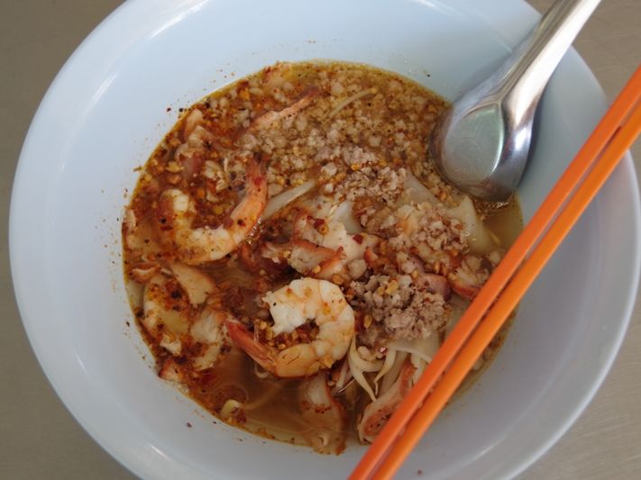 最後は地元で有名だというタイ式ラーメンを食べました。細麺、太麺、米粉、拉麺と麺の種類を選べます。スープの出汁がとてもおいしく、少し食べた後香辛料などを使って自分のお好みの味付けにできます。一杯で色々な味を楽しめますよ。