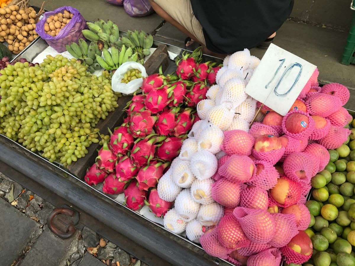 メークロン市場は地元市場みたいな感じでフルーツなど安く売ってました。