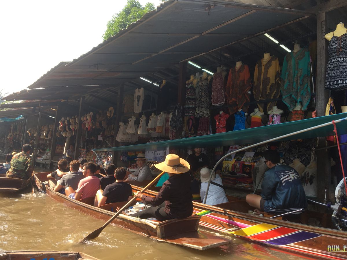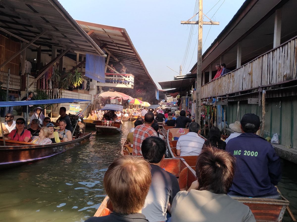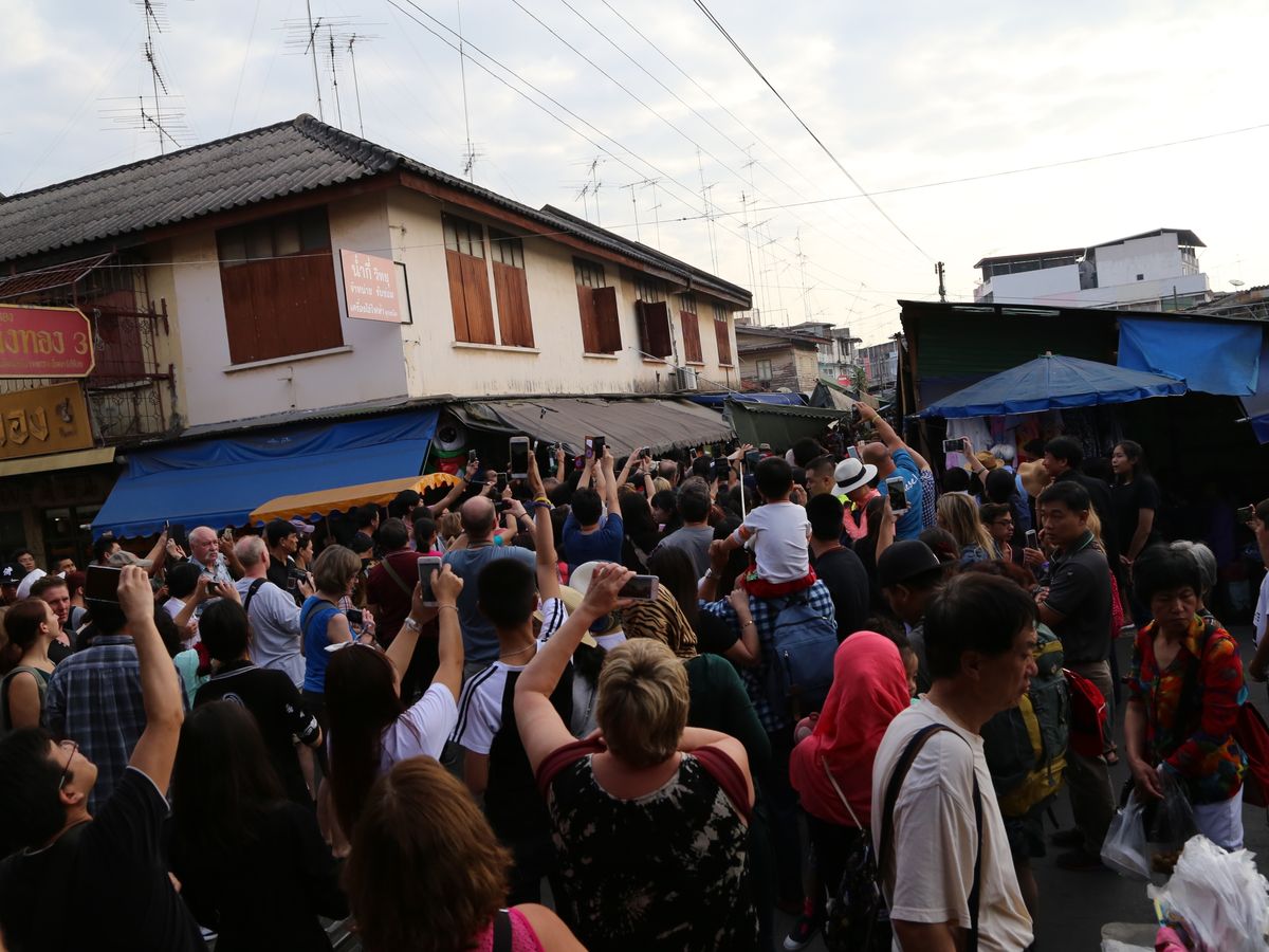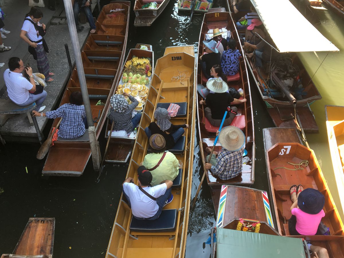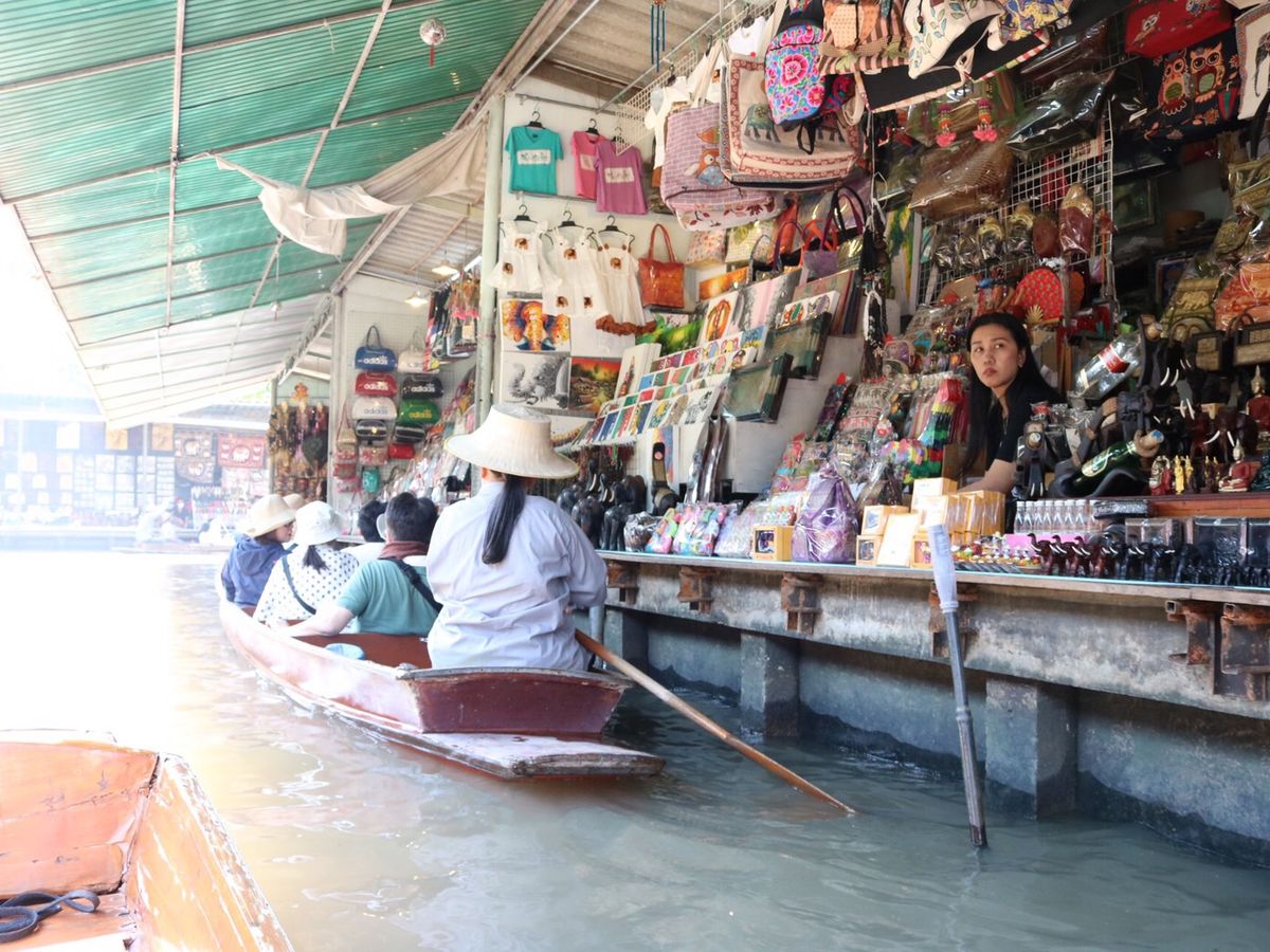 休日ということもあって、各国からの観光客でごった返していた。水辺の土産物屋は観光地価格なので値段交渉が必須だが、相手も観光客慣れしているので、タイ語で交渉しても面倒くさかった。個人でUberの運転手と交渉して、もっと安い料金で回ることもできたと思うが、バンに乗っているだけでいろいろ連れて行ってもらえるツアーはやはり安心、便利でアリだと思う。