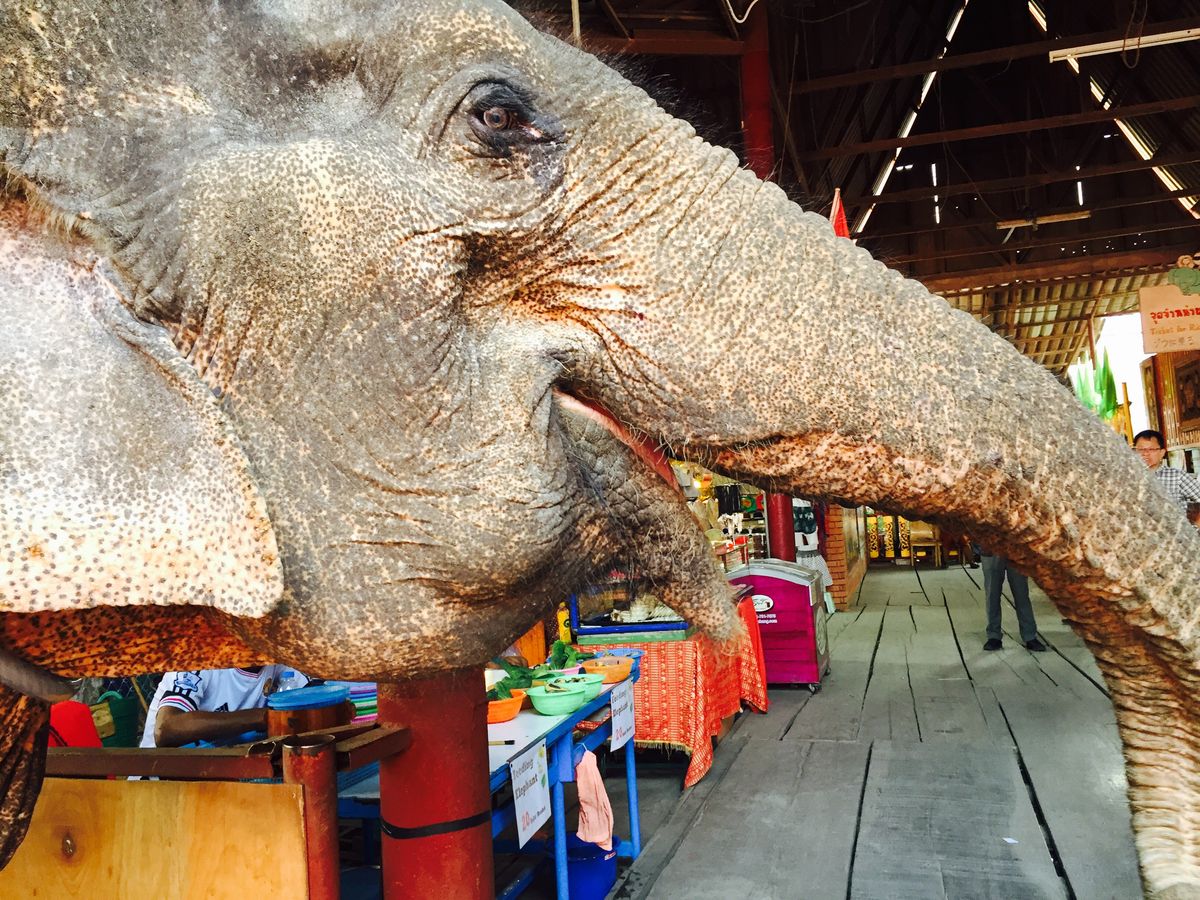 象に乗る体験はバンコクでできて良かったです。水上マーケットは船に乗る船着き場で、船で作っているココナッツパンケーキが美味しく、子供達がおかわりしてました。半日で終わるので、午後からも有効に使えて良かったです。