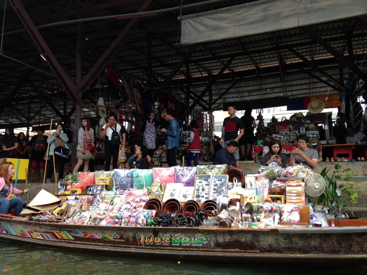 水上マーケットでは観光客相手の土産物屋の商魂たくましいのにこれもビックリ、値段も相当高く3分の1に値切っても買わないほうがいいかも知れません。まーバンコクの異国情緒を味わうのもいいかもしれませんが。面白かったです。