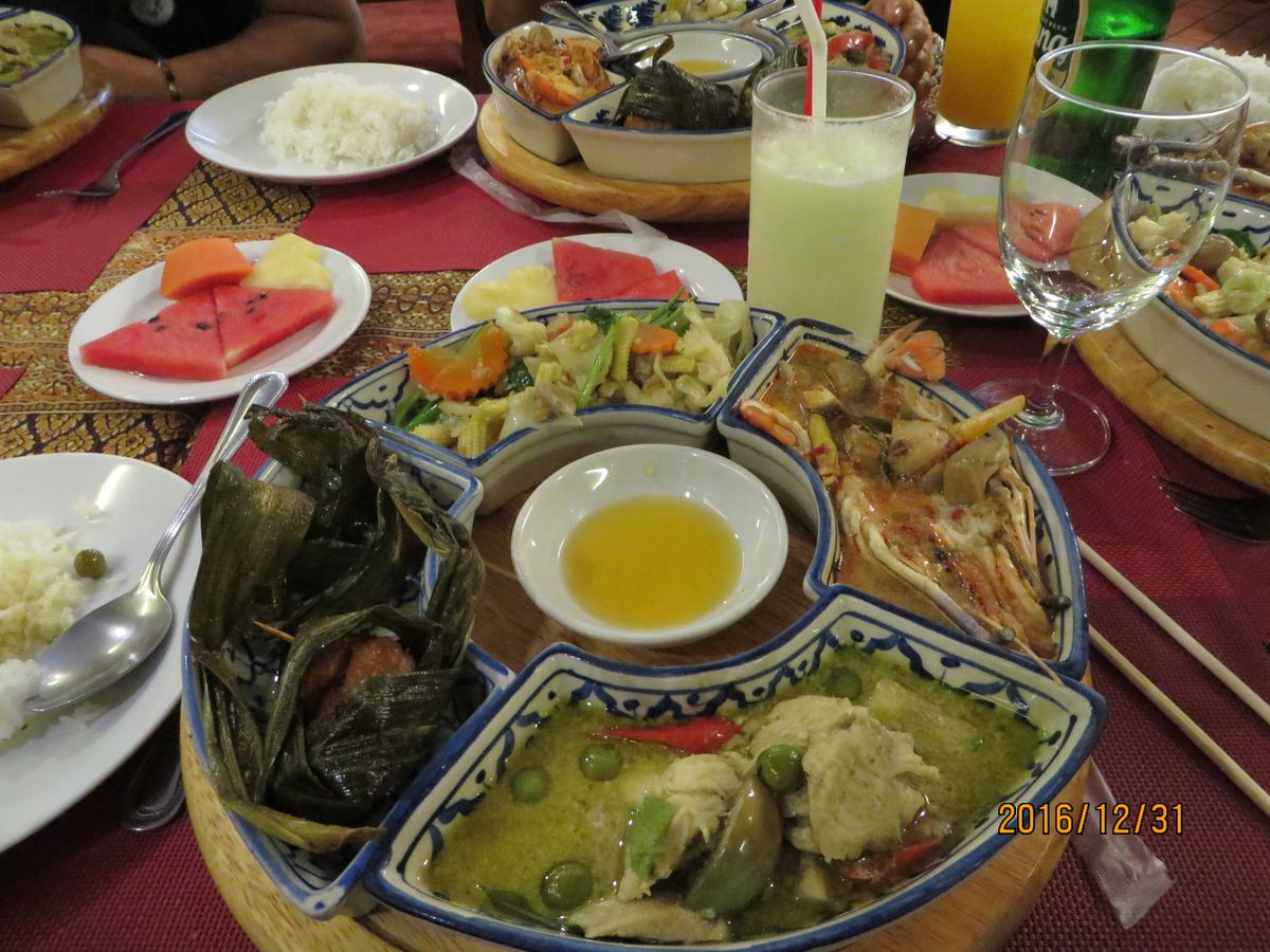 朝早起きするのは辛かったですが,午前中に主な見どころを効率よく見られて満足でした。年末の慌ただしい中,大変な混雑ぶりでしたが,ガイドさんがしっかりリードしてくださりスムーズに観光することができました。初めてタイに来た甥っ子二人(小1・小5)には,日本語での説明で安心できたと思います。昼食もとてもおいしく,二人には辛くない子供メニューで準備してあったのでよかったです。大人のメニューはトムヤンクンとグリーンカレーと野菜炒めとグリルドチキンで果物付きでとてもおいしくタイの名物料理をいただけて満足でした。