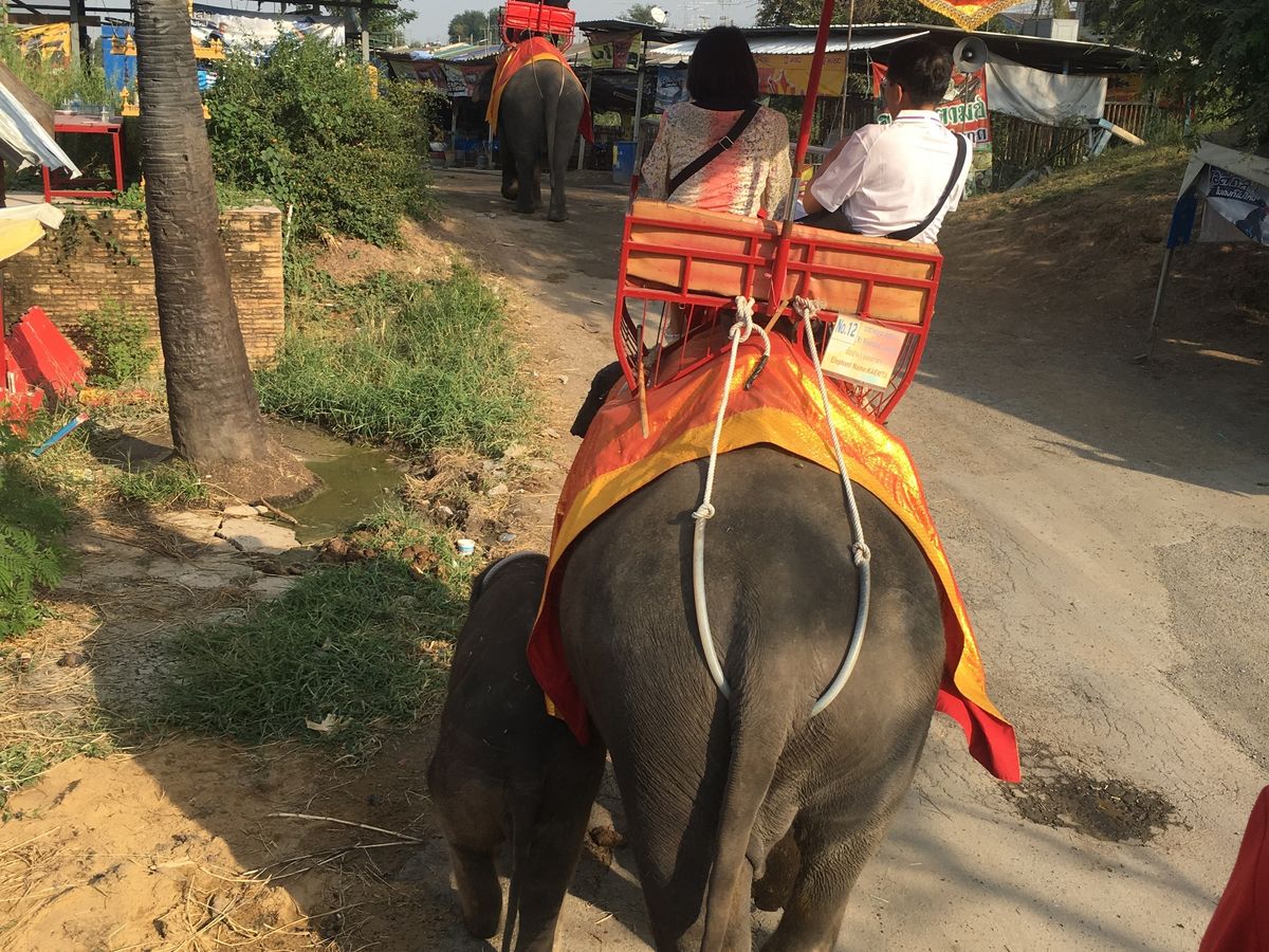 1月1日に利用させていただきました。午後に予定を入れたかったのでランチを食べて14時頃解散でちょうどよかったです。繁忙期という事でシャングリラホテルへのピックアップでした。宿泊していたホテルから朝早いタクシーがつかまるかどうか少し不安でしたが、全く問題なくタクシーがつかまりました。シャングリラホテルからシャトルバスで本体の集合場所につれていってもらえます。この日このツアーは大型バス2台でアユタヤに向かいました。現地ではガイドさんが親切に注意点も教えて下さり、ついていくだけでよかったので非常に楽チンでした。象乗り体験は思ったより高くけっこう揺れます。象のりの時間は約10分で行く前は少し短いかなとおもいましたが、実際にのってみると十分な時間でした。象使いさんに携帯をわたして写真を撮ってもらうとトラブルのきっかけになるので渡さないでと注意をうけました。他のプランで高額チップを請求されたという体験談を多くみかけたので、その点にも非常に安心しました。あかちゃん象と別料金で記念撮影できます。たしか1名40バーツだったと思います。その他いろいろな寺院にもいけますし、大満足です。