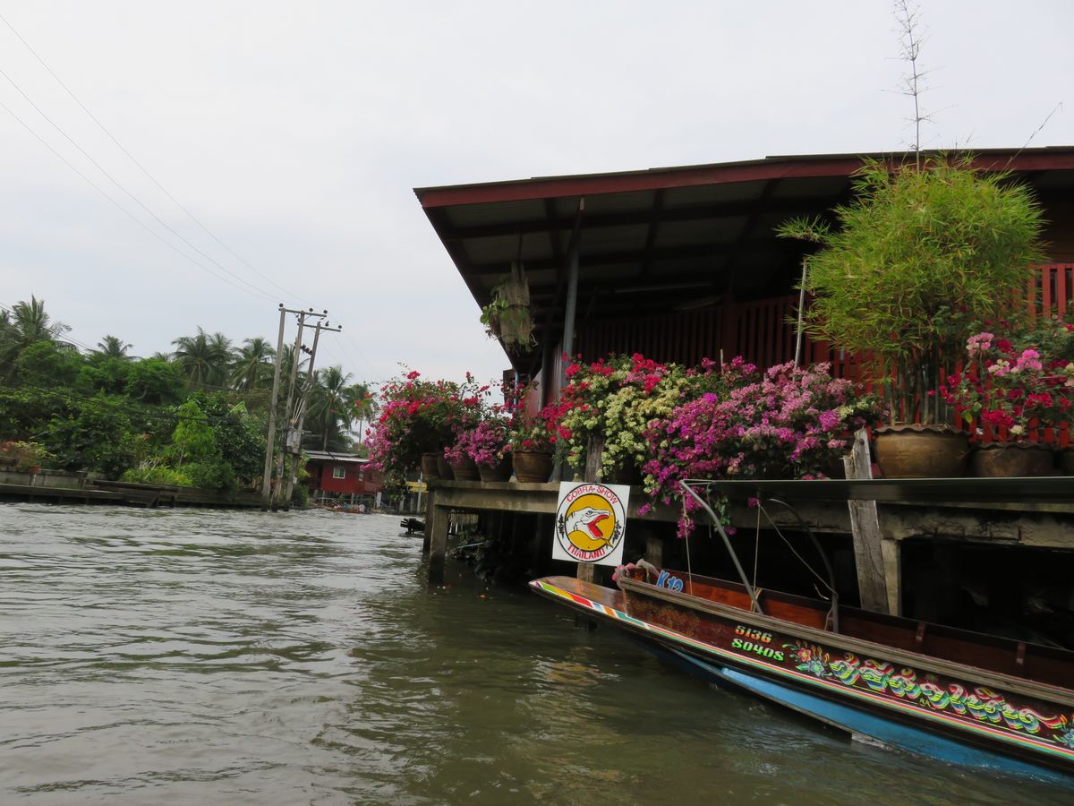 水上マーケットの乗り場までの移動のボートに時間がかかりました。水上マーケットのボートは