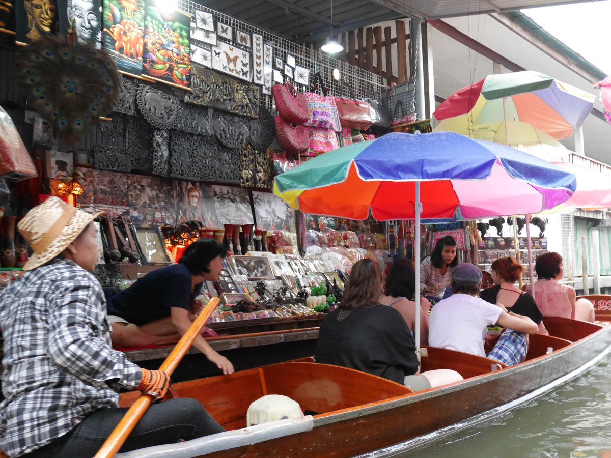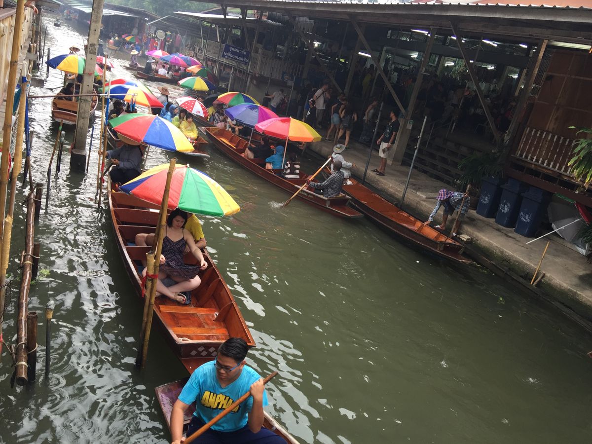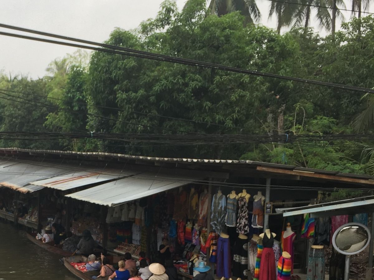 最初はお土産屋さんに寄り、その後水上マーケット。あいにく雨で、天気は悪かったのですが水上マーケットのボートには傘が付いているのでそんなに気にならなかったです。最後に象に乗りに行きました。水の中にも入ってくれてとても楽しかったです。