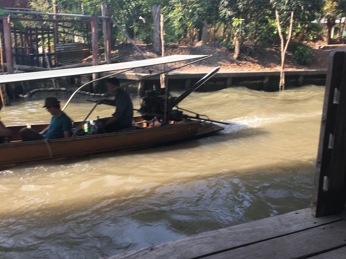 ココナッツファームには10分程よって、近くの船乗り場から、30分ボートに乗って、水上マーケットへ移動。川の水が汚いのがびっくり。ボートのスピードもすごい。笑 家と家の間をボートで通るので、アトラクションみたいでたのしかったです。プラス200Bで手漕ぎボートに乗れるので、是非乗ったほうがいいと思います。手漕ぎのボートに乗る前にガイドさんが揚げバナナを買ってくれました。水上マーケットは観光地って感じで、お土産のお店がほとんどでした。ローカルな市場を求めている方は、違う市場のがいいかも・・・。手漕ぎボードを降りる時に、こいでくれたお姉さんにチップチョーダイネって言われました。