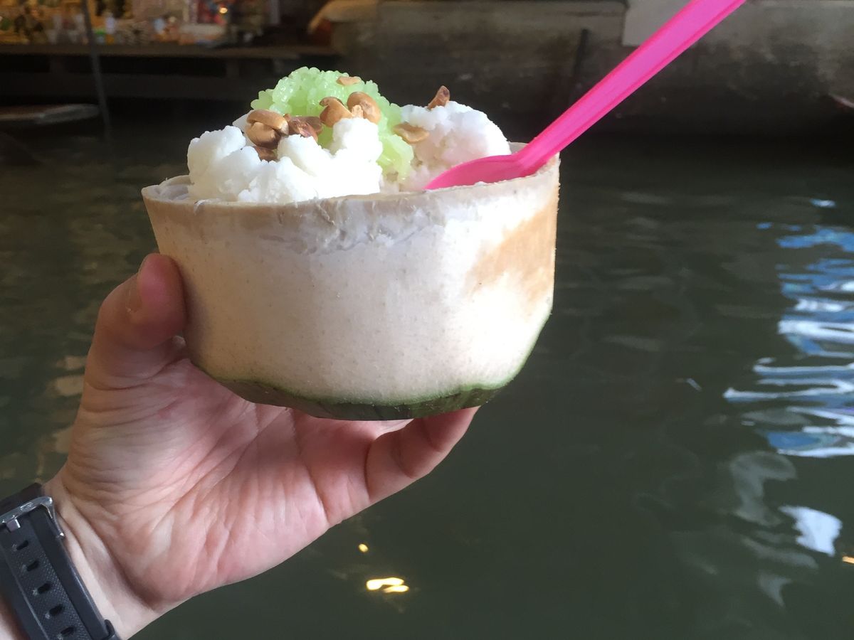 あと、象乗りの後に行った水上マーケットもなかなか楽しかったです。ラーメン?的な食べ物とココナッツアイスを食べました。こちらもお勧めです。