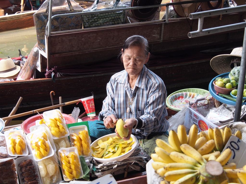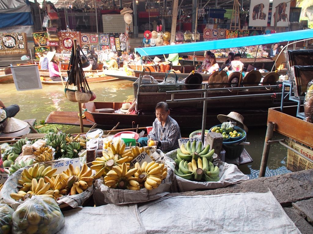 水上マーケットは、エンジンボートのジャングルクルージングをキャーキャー言いながら楽しみました。手漕ぎボートは、あっちに行きたいとかリクエストを聞いてくれます。土産物は相当高いけど、お菓子とかフルーツはまあOKかなという額なので買っても良い感じです。