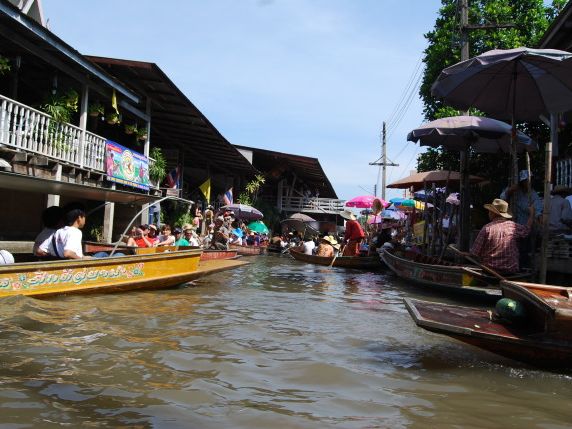 初のタイ旅行でアユタヤなど色々行きましたが、水上マーケットが一番おもしろかったです!マーケットに行くまでの船はスピードが早く楽しかったです♫小舟に乗ってマーケットを周るのはアジアという感じでとても新鮮でした!おいしい果物もたくさん食べることができ、大満足でした^0^またぜひ行きたいです!