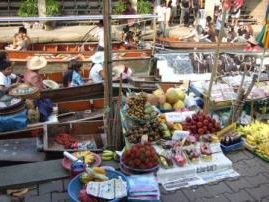 ボート上では、ボートこぎの人にお願いすると行きたい場所へ寄せてくれるのでマンゴスチンのお買い物もできましたが、ほかの店ではおばさんが執拗に物を売ろうとしたのがちょっとしつこかったです。