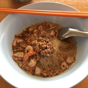 昼食のタイ風ラーメンが旨かった。麺はマロニーみたいな感じで