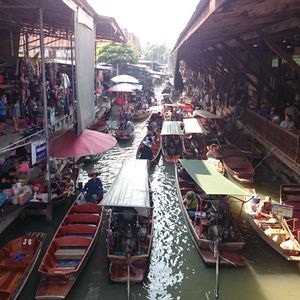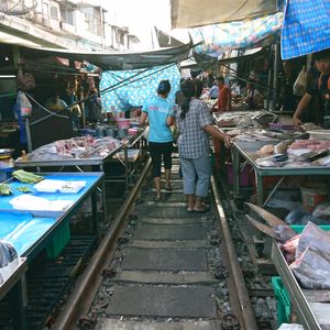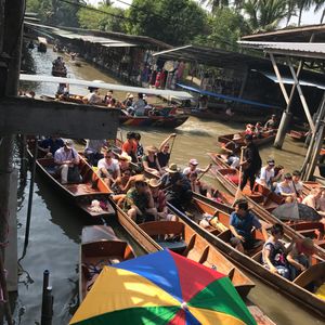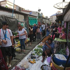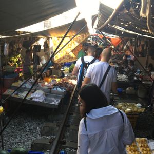 バンコクからの移動に1時間、路線市場は観光客で大混雑しています。