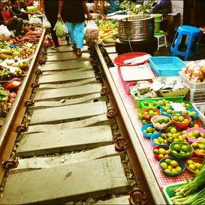 メクローン線路市場は、本当にテレビで見た通りで、電車が来るアナウンスが流れると一斉に店じまいしている光景が見れました。