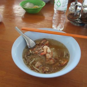 市内に帰る途中で食べた〝タイ式ラーメン〟はとても美味しかった。