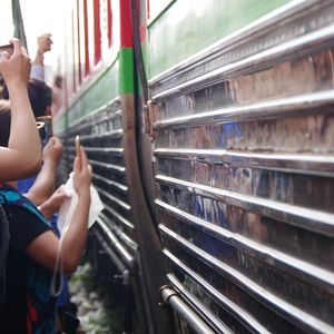 メーイクロンは、写真のように電車と市場の風景を見られるのは一番前の人だけ。