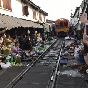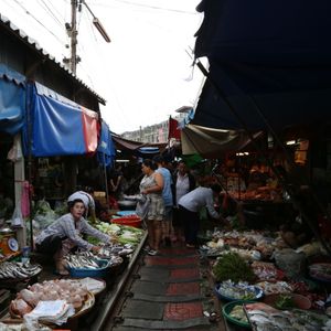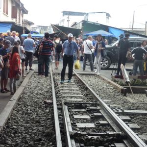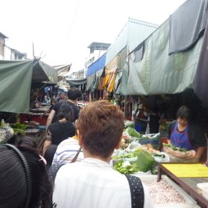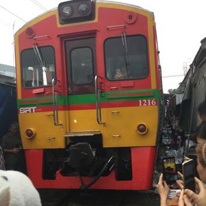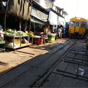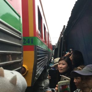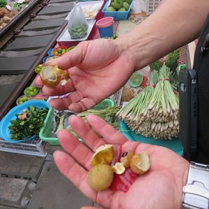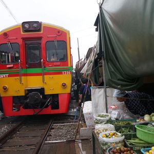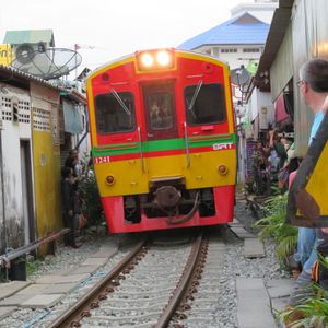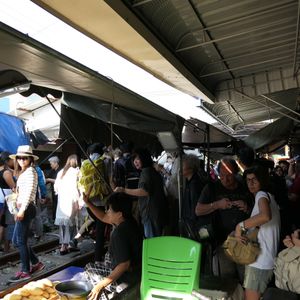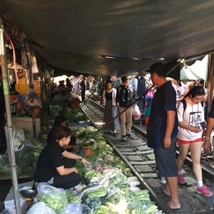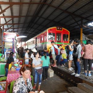 鉄道マーケットは迫力満点。私たちは露店に潜り込んでそこから列車の通過を見たのですが、目の前を通る電車に感動しました。私たちはシンガポールからだったので、野菜や果物(マンゴー)なども買い込み、途中小腹が空いたので屋台で食べ物を買ったりと楽しかったです。その後のココナッツファームは観光客プライスだったので何も買わず。かなり交渉できるとおもいます。(チャトチャックなどの4倍はふっかけてたかな)