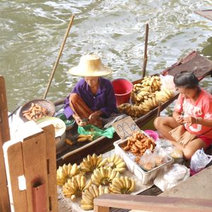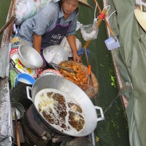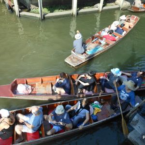 水上マーケットでは観光客相手の土産物屋の商魂たくましいのにこれもビックリ、値段も相当高く3分の1に値切っても買わないほうがいいかも知れません。まーバンコクの異国情緒を味わうのもいいかもしれませんが。面白かったです。