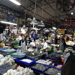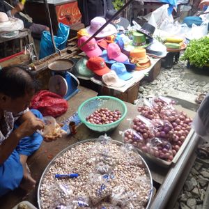 8時前に到着したので線路市場への電車の乗り入れが8:30分以降の為ガイドさん先導で併設の地元市場の中を見学です!この市場自体が海岸に近い河口近辺の立地により新鮮な海産物が沢山売られており、それに付随して肉、野菜、果物、乾物、加工品等々の日頃の生活必需品の個人商店が沢山入っておりました。(さながら日本の築地の場外みたいな感じです)