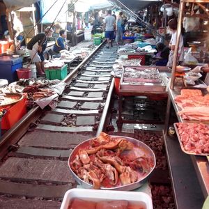 線路市場は、市場をただ通り抜けた後、電車が来たら終了。ただ、自分ではなかなか来れないので、良い経験かも。