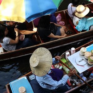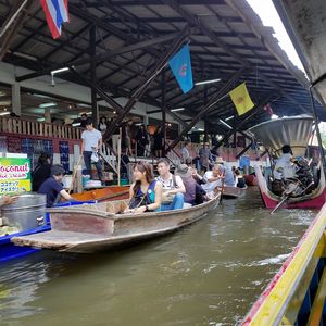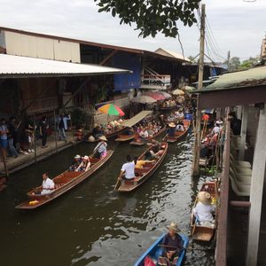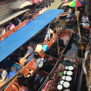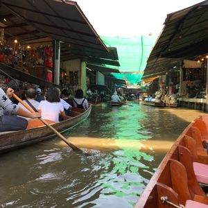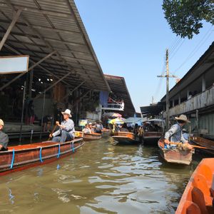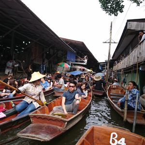 卒業旅行で親友とバンコクに2泊3日で行きました。ツアーには最終日の3日目に参加しました。少し立地が悪いホテルに宿泊したのですが、ガイドさんと運転手さんがきちんと集合時間にロビーで待っていてくださいました。このツアーは早朝の6時半に集合し、約1時間かけてメークロン市場へ向かいます。朝のマーケットはとても賑わっていました。電車が来る直前まで多くの観光客が線路の上で買い物をしています。汽笛が鳴り、一瞬にしてマーケットが畳まれる様子は圧巻でした。また、電車が通り過ぎた後に再開されるのも見ていてとても楽しかったです。その後は、水上マーケットへ向かいます。以前バンコクに訪れた友人に、水上バスはツアーに参加しないと長時間待つことになると聞いていました。少しくらいは待つのかなと覚悟していましたが、待ち時間も一切なくスムーズに乗ることができました。まるでディズニーランドのジャングルクルーズのようでとても楽しかったです。直線ではかなりスピードを出し、絶叫マシンのようでした。また、水上のマーケットは多くのボートが行き交います。この活気あふれるマーケットに加われただけでもツアーに参加してよかったと思いました。