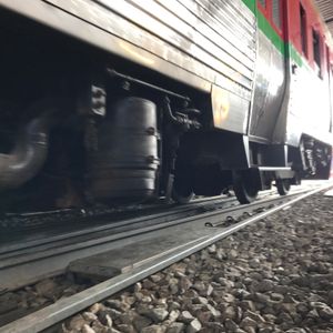 遠くから電車が見えてきたと思ったら、意外にもゆっくり電車が近づいてきます。ここで、おすすめなのが、写真を撮ろうと詰め寄ってくる人たちに蹴られるの覚悟でしゃがんで写真を取ります。前の方に行ければですが笑。そうすることで人の頭が映らず撮ることが出来ます。