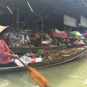 行った日が月曜日で空いていたせいか水上マーケット場へ行く乗り継ぎのボートがめっちゃ早くてスリリングで結構長い距離を走り、面白かったです。予想外だったので楽しかったです。
