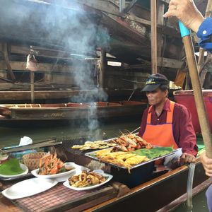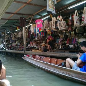家族4人で参加しました。水上マーケットは、観光化されていて面白くないという意見をよく聞きますが、観光地に行っているわけですからね。私はプーケットに住んでいたことがありますがタイの観光地はおもしろいですよ。ここの水上マーケットも5回目ですが、水上マーケットのテーマパークでいつもいつも楽しんでます。買い物というよりも、ローカルフードを買って食べながら船に乗ると断然おもしろいですよ。他の人たちと一緒に手漕ぎボートを積極的にシェアーしましょう。いろんなものをみんなで食べて盛り上がろう。知らないものも食べてみよう。