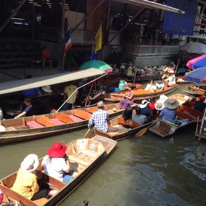 メークロンの線路市場に行きたかったのですが 滞在したホテルが中心部から外れており 線路市場のみのツアーを催行する会社の送迎範囲外なので このツアーにしました。両方を午前中に回る為 それぞれの滞在時間が短い上 ダムヌンサドアクの到着が遅くなるため大変な混雑となってしまいます 水上マーケット内は船がごった返して身動きの取れない状態。前回行った時のゆったりした感じが全くなく ちょっとがっかり。効率よく見るには良いが、じっくり楽しむには それぞれ単独のツアーで行くか 車をチャーターする方が良いかも。