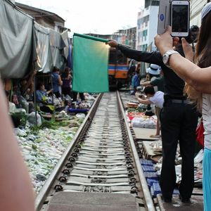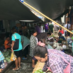 かなり不思議な光景です、いい体験でした但し人が多くて早めにカメラポジションを取らないといい写真が撮れません、私は車内に入って写真も撮りました、水上マーケットはテレビで見るよりも観光客向けで客引きがハンパないですがいい経験です。