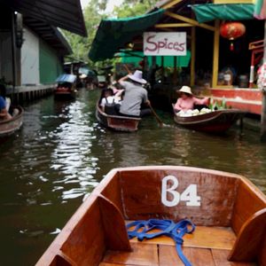 スピードボートで水上マーケットへ向かう道中、生活の場である家屋を見て、都市と地方の違いを色々と感じ入ります。終点では土産物さんしかなく、向こう岸にも渡れないので、出発までの時間、手漕ぎボートに乗ることをお勧めします。ボードの大混雑模様は、ここならではです。