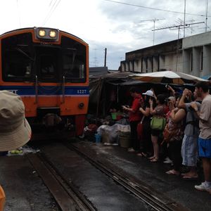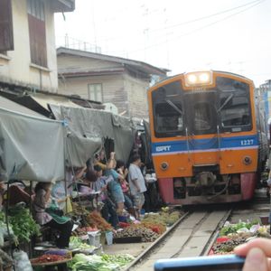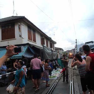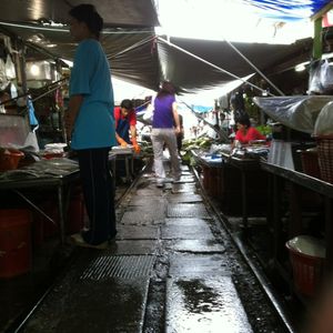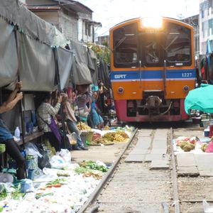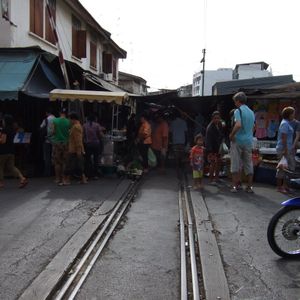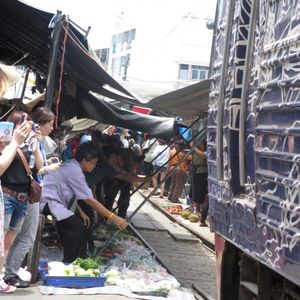 線路の上に広がる市場が、電車が来るとパタパタと店をたたみ、通過すればすぐに元に戻る!売っているものは魚や肉などであまり買うものはないが一見の価値ありです!