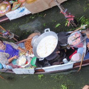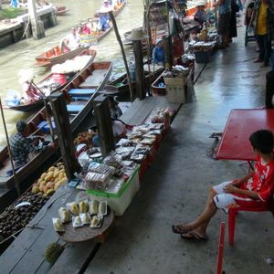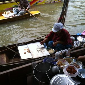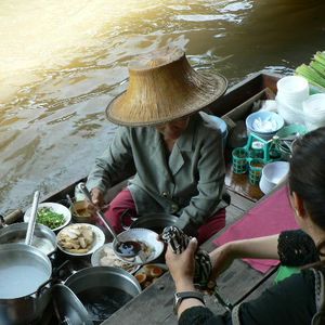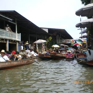 以前TVで見たことがあった路線市場に行き珍しい光景を見ました。市場の中は、においがきつく耐えられませんでしたが、まあおもしろかったです。水上マーケットに行くまでにボートに乗ったのですが、肝心なマーケット前で降ろされマーケットは、地上から見学。ボートに乗りたければ別料金(何???)でした。ただ、軽食のタイラーメン、連れて行かれたところがドライブインのような、倉庫のような、ところだったので期待していなかったらなんと・・・美味しいタイラーメンでした。昨日の「マンボー」は最悪だったのでこれは、まだ許せるけど、どちらも「一回行ったらもういいか」っー感じでした。