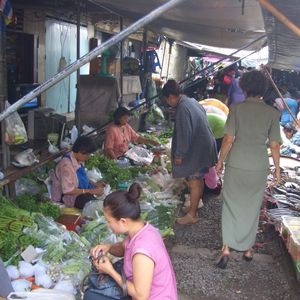市場は色とりどりの帽子や野菜、果物が売られており、土産物売り場もありましたが、今一、購買欲をそそるものはなく、ここで食べたラーメン屋、ココナツのパンケーキやバナナのフライなどが印象に残っています。