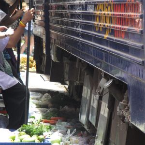 列車が近づくとパタパタとテントが折りたためられ、それらが片づけられ列車がゆっくりと市場を横切り、駅へ入ってくるさまはユーモラスで大変興味深い。