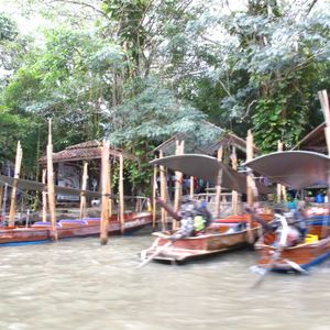まずは線路市場に行きましたが、11時の時間通りに電車が来てしまったようで、間に合わず、水上マーケットへ。どなたかの書き込みにありましたが、マーケットまで行くボートがスリリング! 遊園地のアトラクションのようでした。