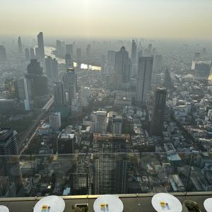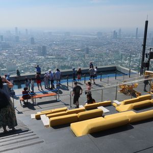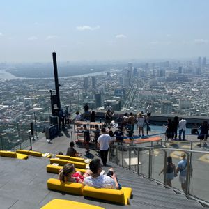 タイの新名所になっており、その独特な形が遠くからでもよく見えます。混んでいたらチケットを買うのに時間がかかると思い、こちらで事前予約しました。旅行の最終日、午前中のピンクガネーシャの貸し切りツアーに参加したのち、BTSに乗って行きました。眺めがすごくよかったですし、屋上のルーフトップは、風がよく通って気持ちよかったです。バーになっていて飲み物も飲むことができますが、場所柄やはり割高です。特に何も飲まなくても、ソファーに座って景色を眺めたりもできます。結構混んでいましたが、そこまで待たされることなく上まで登れたのはよかったです。