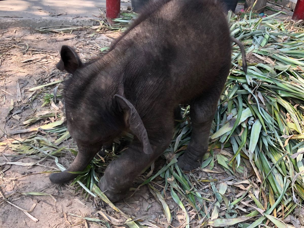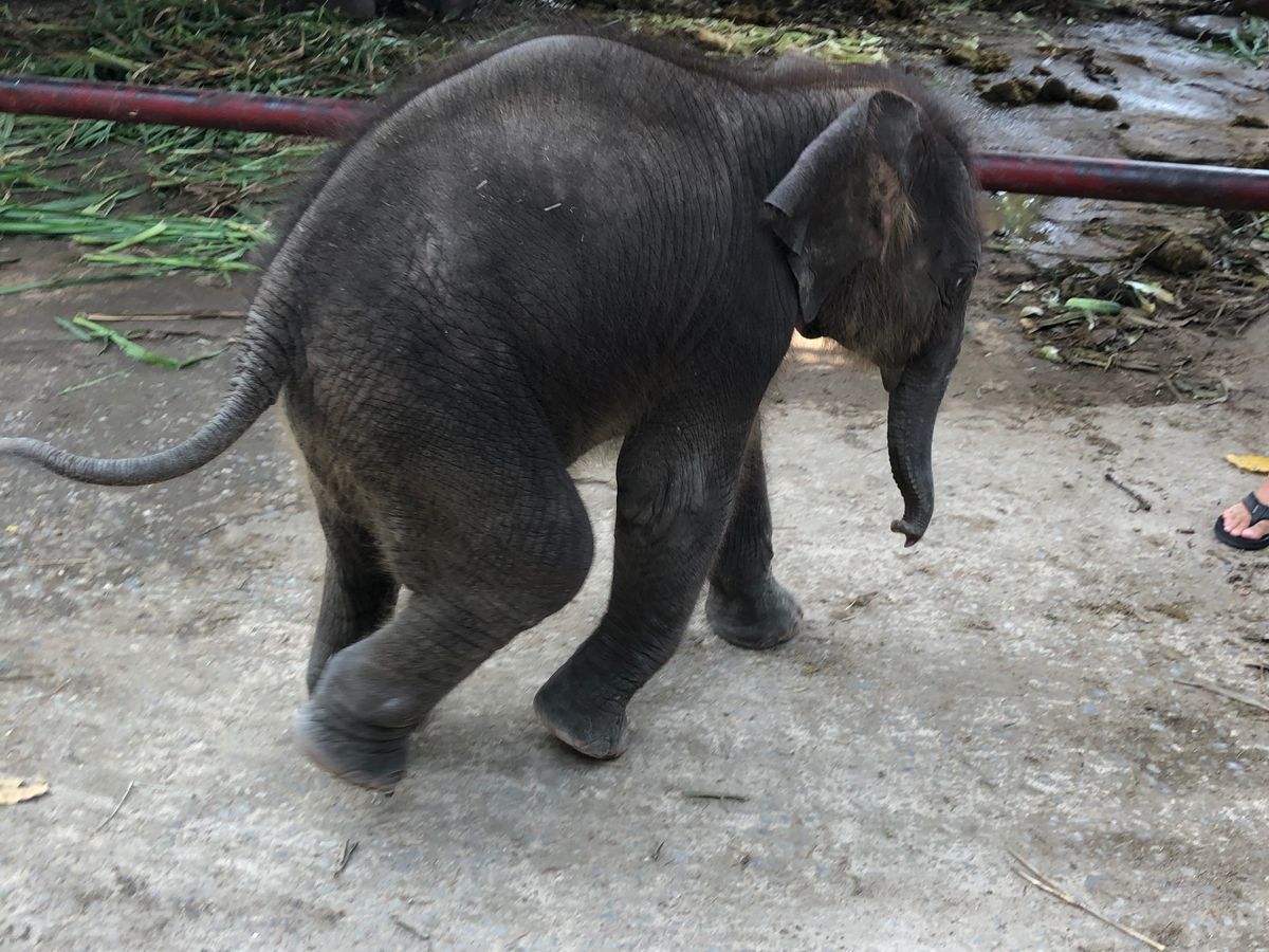 さらに左手に向かうと赤ちゃん象と写真が撮れます。一人100バーツ。触れ合えるしキスしてくれるしとっても楽しめます。