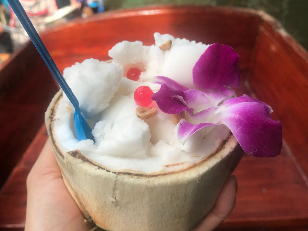 ガイドのponさんがとても親切でよかった。日本語で説明してくれるからわかりやすかった。半日でココナッツ、水上マーケット、像行けて大満足。