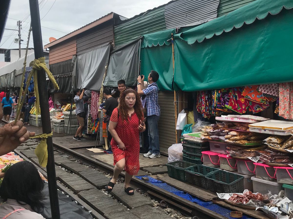 アユタヤ観光って結構移動に時間がかかり、半日~一日つぶれてグッタリになることが多いけどこのツアーは朝メークロン市場に行き、列車が来るまでの待ち時間に近くの屋台みたいなお店でパッタイ(タイ風焼きそば)やテンモーパン(すいかジュース)頂いたり、線路市場で無茶苦茶安いマンゴ買ったり楽しめます。列車が来たときは残念な事に雨が降っていたので傘傘傘で良く見えなかったけど。