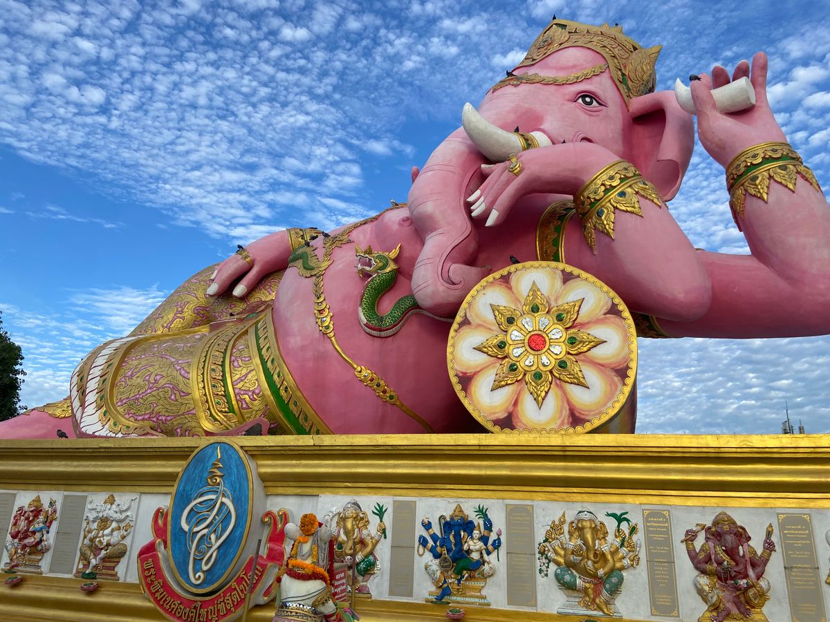 今回は早朝便に、合わせて迎えに来て頂き、ピンクのガネーシャ、メークロン市場、ワットパクナムの8時間コースをお願いしました。
