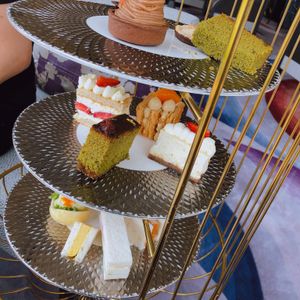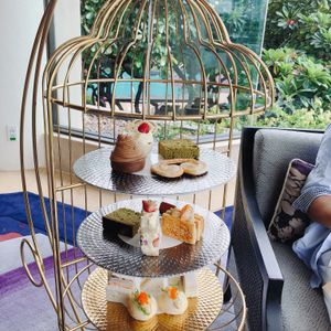 アフタヌーンティーの内容は、鳥かごに入った可愛らしいスイーツと、グラタンやスコーンなどがつき、お昼ご飯は軽く食べたとはいえかなりお腹一杯でした。スイーツは小ぶりのものを二人でシェアする感じでしたが、結構甘くて濃厚なのでちょうどよかったです。ドリンクの種類も豊富でした。周りを見てもみなさん何かしら残していたので、お腹を空かせて来た方がいです!(笑)ホテルもゴージャスな感じで、優雅な一時を過ごせるのでおすすめです。