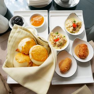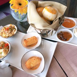 シャングリラホテルのアフタヌーンティーでは、チャオプラヤー川と対岸のビル群を眺めながらの優雅なティータイムを過ごせました。こちらのティーセットは鳥かごの甘味のほかグラタンやクリームコロッケ等もあるため、ボリューム感たっぷり。朝ごはんは少なめして参加されるのが良いかと思います。