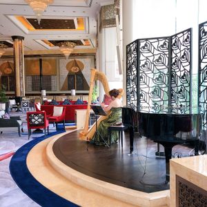 ホテルのエントランスまでバンで迎えにきてくれて、そのままシャングリラホテルへ移動しました。しかし、降ろしてくれた場所は正面口ではなく、アフタヌーンティーの会場までもかなり遠い裏口でした。裏口の方には英語や日本語が話せるスタッフがいなくてかなり途方にくれていて、なんとなくでアフタヌーンティー会場まで移動しました。ホテル内の構造が複雑で、階段を昇ったり降りたり大変でした。